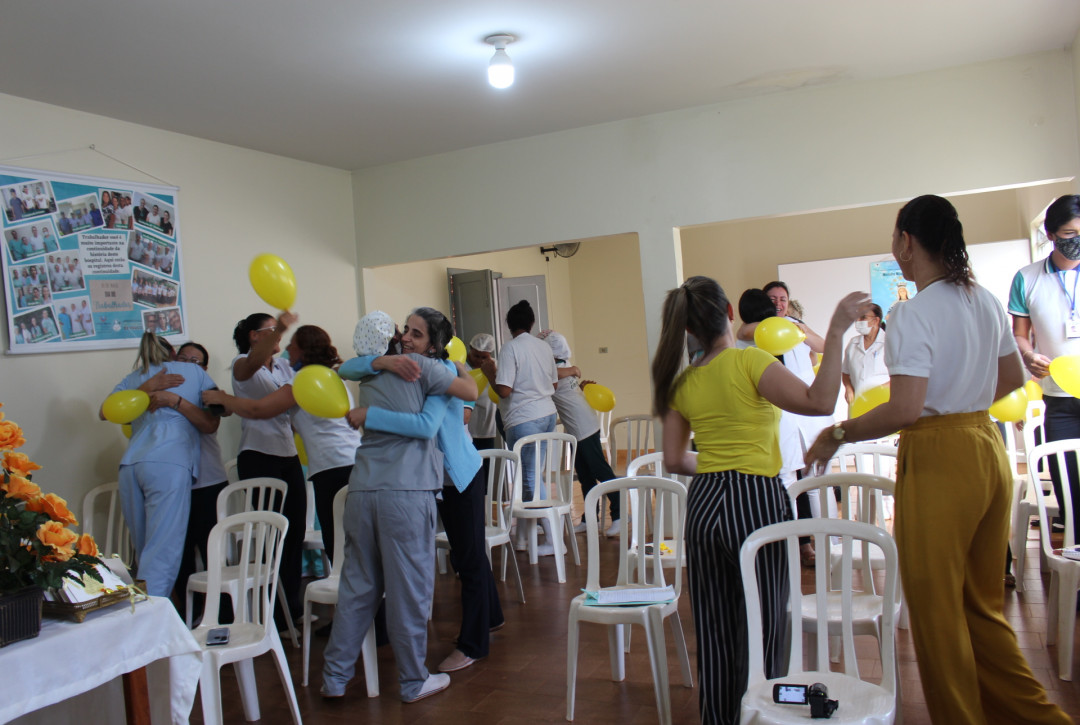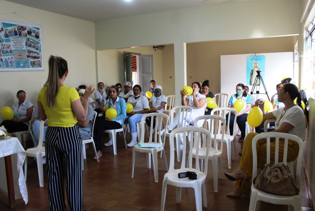 Em comemoração ao Setembro Amarelo, mês de prevenção ao suicídio em todo o mundo, a diretoria do Hospital São Vicente de Paulo realizou nesta sexta-feira 23, uma mobilização que abordou o tema “Valorizando a Vida” com a psicóloga Elza Maria. Antes de iniciar a palestra, a enfermeira do HSVP Lívia Assis, realizou uma dinâmica com todos os participantes, mostrando a importância da vida para cada pessoa.