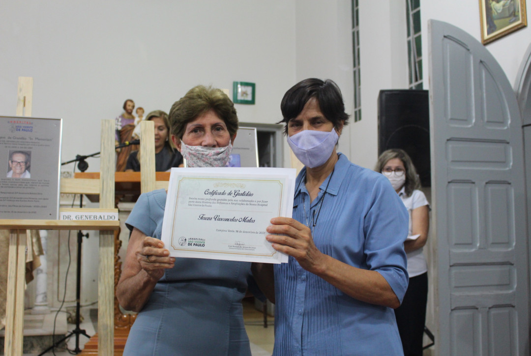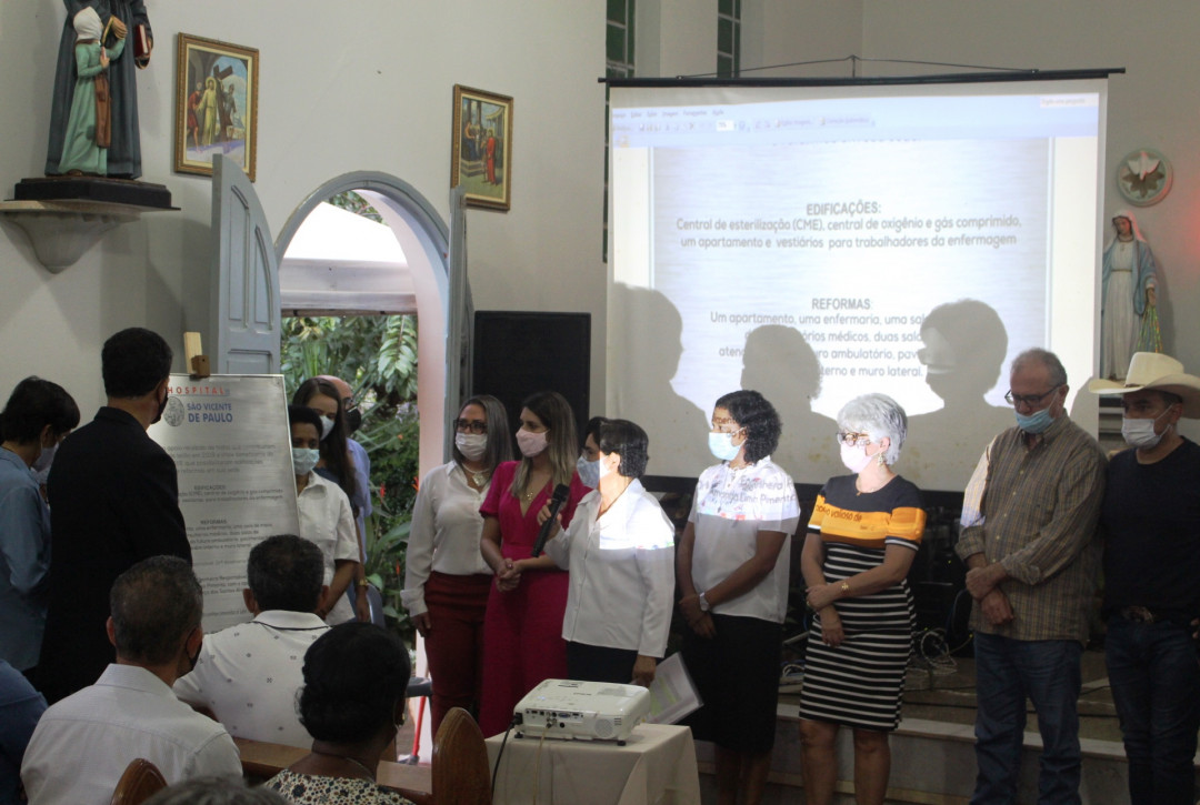 Nesta quinta-feira 16, foi realizado na Capela do Hospital a cerimônia de prestação de contas e apresentação das obras já concluídas pelo hospital. Estiveram marcando presença no evento a diretora do Hospital São Vicente Imã Marilsa das Graças, FC, o diretor administrativo do hospital João Elias de Morais, o diretor clínico do hospital Dr. Genebaldo Nahass (Genezinho), além das seguintes autoridades, a vice provincial Irmã Marcia Santos, FC, Irmã Shirley Silva, FC representante do conselho provincial, o prefeito municipal Dr. Helder Carneiro, o juiz da comarca de Campina Verde Dr. Jefferson Val, o promotor de justiça Dr. José Cícero Barbosa, o presidente da câmara municipal Vanderlei Ferreira e o pároco Pe. Paulo José, CM.